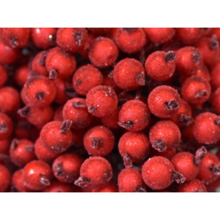 Montate pe băț, Bobite decorative 1,2 cm 400 buc sunt foarte ușor de adăugat în aranjamente florale, buchete, coronițe, ghirlande, lumânări decorative sau ornamente pentru brad. Datorită aspectului lor „înghețat”, acestea oferă o notă autentică de iarnă, fiind perfecte pentru decoruri de sezon, vitrine festive, compoziții rustice sau moderne. Culoarea roșie vibrantă le face ideale pentru tematicile specifice Crăciunului, dar și pentru aranjamente elegante, romantice sau tematice.