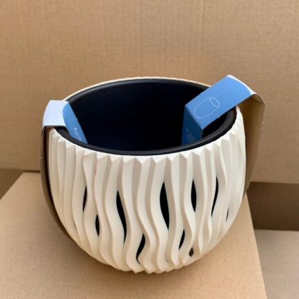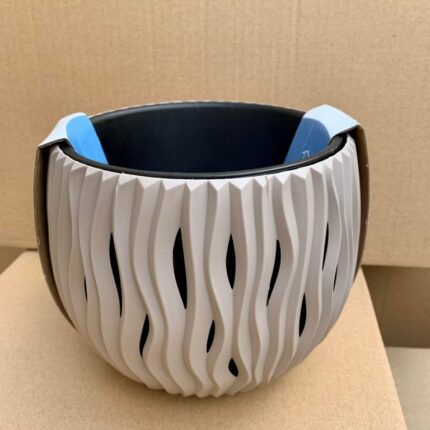 Bolul include un insert din plastic pentru plantare directă, ceea ce asigură o mai bună drenare și o manipulare ușoară a plantelor. Materialul rezistent la raze UV și umiditate prelungește durata de viață a ghiveciului, fiind potrivit și pentru utilizarea în exterior.