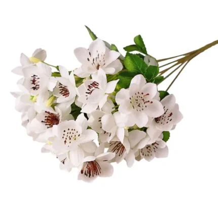 Cu o lungime de 33cm, buchetul este potrivit pentru vaze medii, aranjamente de masă, decor pentru evenimente, vitrine sau proiecte DIY. Florile artificiale sunt atent lucrate, cu petale fine și detalii realiste, completate de frunze verzi bogate ce oferă volum și echilibru compoziției.