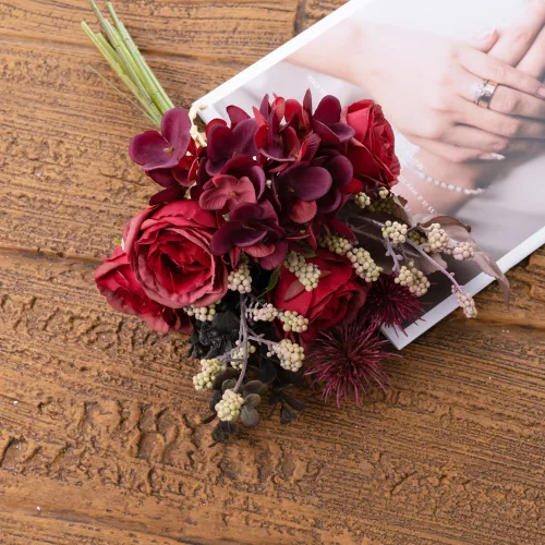 Buchet de flori de mătase cu hortensii roz – 32 cm, Burgundi – eleganță și rafinament în decorul tău
