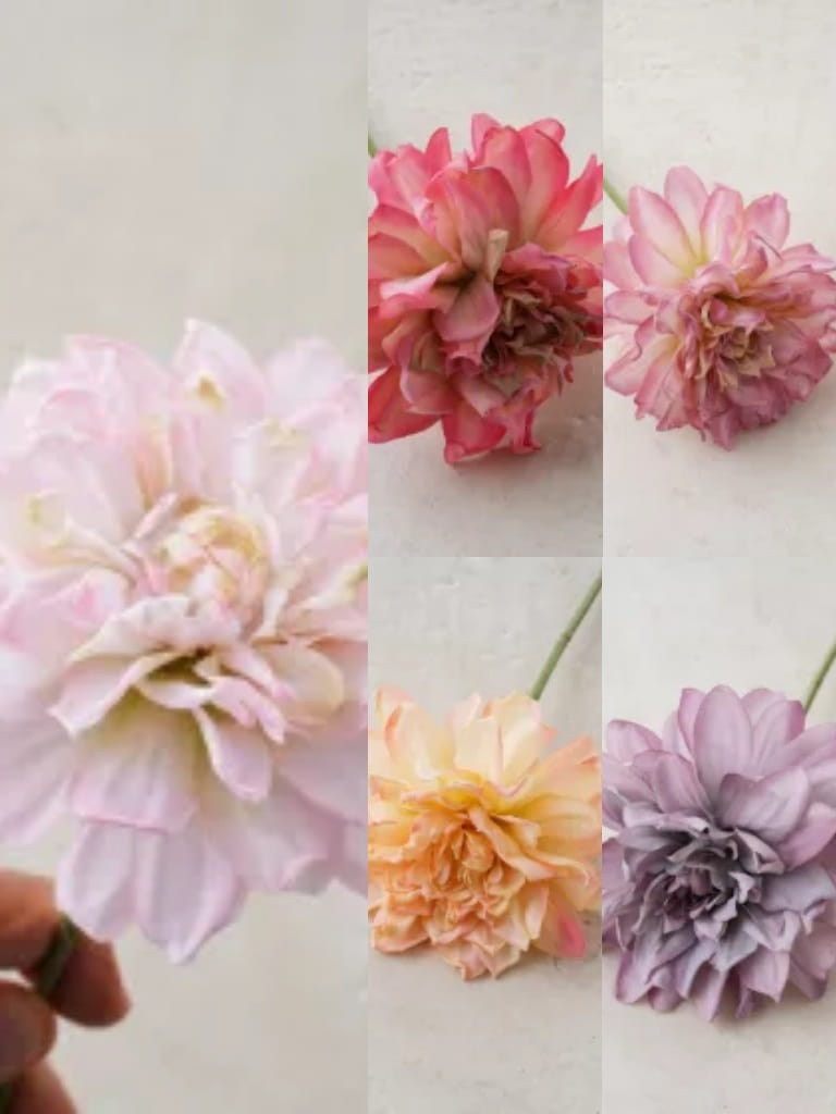 Realizată din materiale de calitate, dalia artificială este durabilă și își păstrează aspectul impecabil în timp, fără a necesita întreținere. Tulpina flexibilă permite modelarea ușoară și integrarea armonioasă în buchete sau aranjamente personalizate.