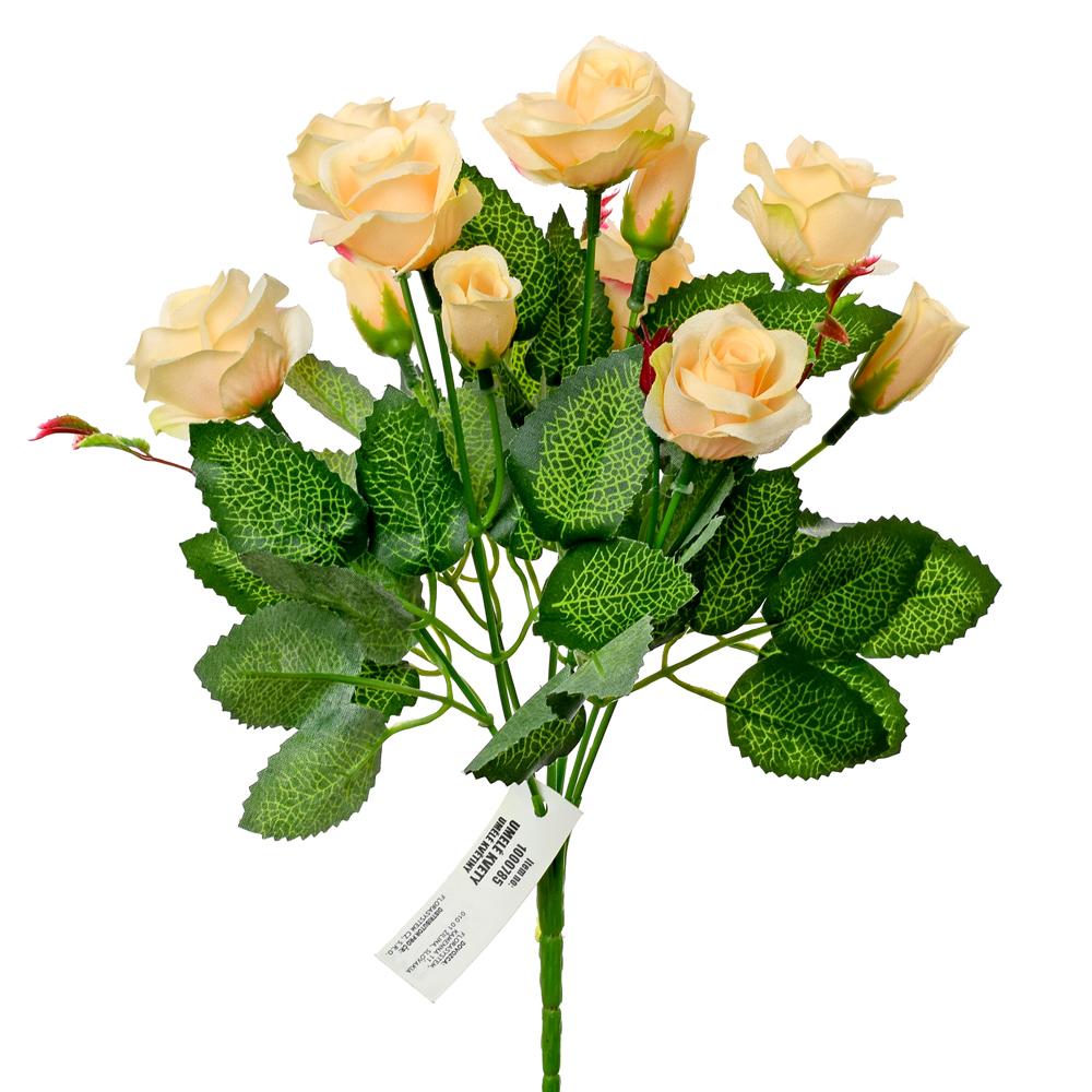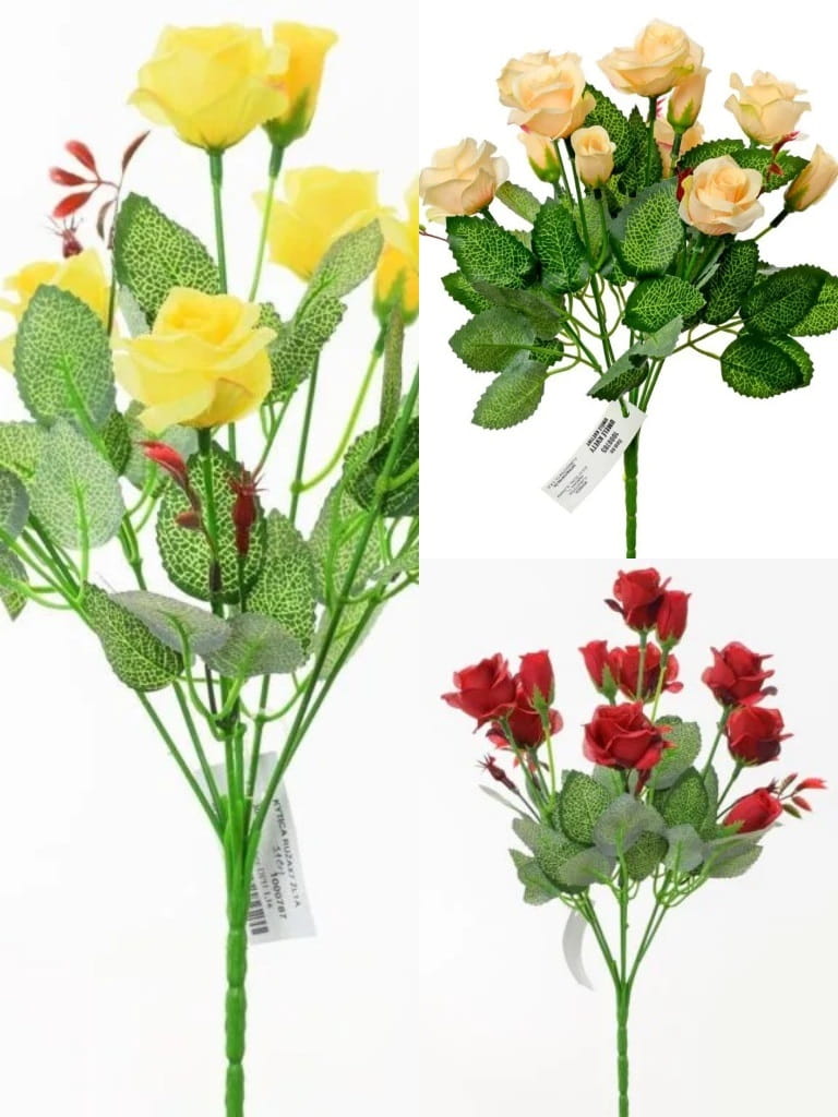 Buchetul de Flori artificiale buchet trandafir 31 cm poate fi creat în diferite dimensiuni și stiluri. Poate fi un buchet compact și elegant, cu trandafiri strâns împachetați și legați cu o panglică, sau un buchet mai voluminos și plin de petale, cu flori dispuse într-un mod mai liber și natural.