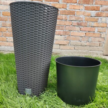 Ghiveci inalt pentru flori cu un design foarte modern si textura care imită o împletitură din ratan naturala. Aceste ghivece in doua dimensiuni vă permit să creati un design exterior unic si să va organizati fără probleme spatiu în jurul casei. Fabricat din plastic de înaltă calitate (polipropilenă), rezistent la conditiile meteorologice (cum ar fi ploaia, zăpada, înghețul) si razele UV, intreținere ușoară, 2 in 1 ( ghiveci cu suport interior).