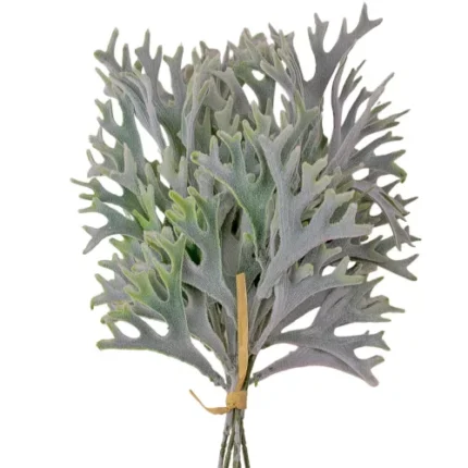 Buchet artificial de eucalipt, de culoare verde brumat, cu frunze mici, ideal pentru a-l utiliza în aranjamente si decoratiuni cu flori artificiale.