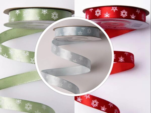Panglică clasică cu fulgi de zăpadă simpli și curați. Este o alegere perfectă pentru împachetarea cadourilor și pentru decorarea și agățarea decorațiunilor și coroanelor de masă. Este extrem de avantajoasa, deoarece există 20m de bandă pe rolă.