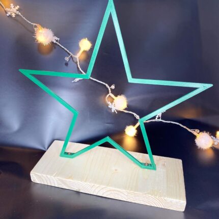 Suport pentru aranjamente florale si nu numai, in forma de stea, pe alb si verde. Este realizat din plastic, avand ca suport o placuta din lemn, cu 2 cuie mici.